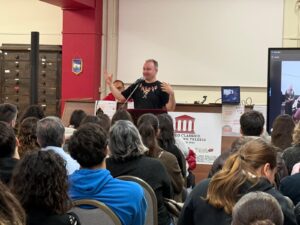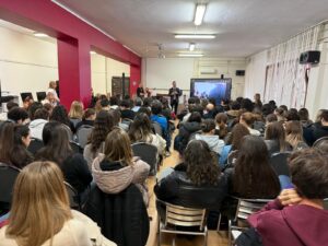 “Siamo felici di ospitarla- ha esordito il Dirigente Domenico De Luca nel porgere il benvenuto proprio e della scuola al gradito ospite- i temi che tratterà si allineano perfettamente con la nostra impostazione scolastica. Gli autori che ci presenterà ci offriranno uno strumento prezioso per analizzare la nostra autenticità, agendo da baluardo contro ogni tentativo di conformismo. È per noi la riscoperta di argomenti che ci toccano profondamente sul piano educativo.”