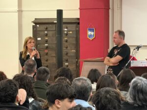 “Siamo felici di ospitarla- ha esordito il Dirigente Domenico De Luca nel porgere il benvenuto proprio e della scuola al gradito ospite- i temi che tratterà si allineano perfettamente con la nostra impostazione scolastica. Gli autori che ci presenterà ci offriranno uno strumento prezioso per analizzare la nostra autenticità, agendo da baluardo contro ogni tentativo di conformismo. È per noi la riscoperta di argomenti che ci toccano profondamente sul piano educativo.”