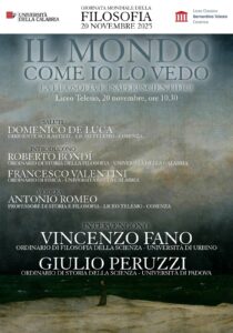 Nella giornata Nazionale della Filosofia il Liceo Telesio di Cosenza ha ospitato un prestigioso convegno dal titolo: “Il Mondo, Come Io Lo Volevo. La Filosofia e i Saperi Scientifici” a cui hanno preso parte Studenti delle classi quinte e ospiti d’eccezione che hanno esplorato il legame storico e contemporaneo tra queste aree del sapere, sottolineando come la scienza non possa prescindere dalle domande fondamentali della speculazione filosofica.